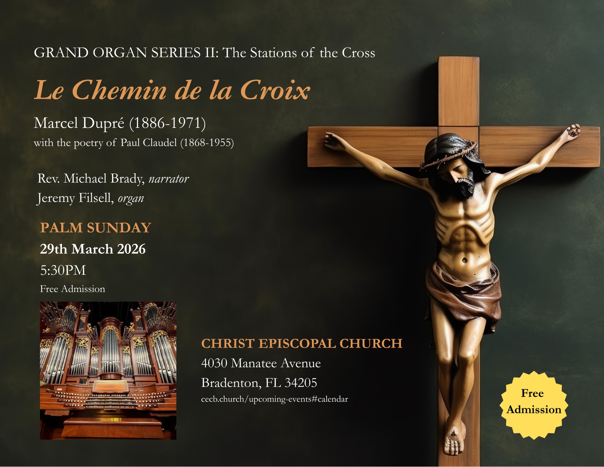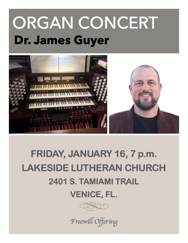 January 16, 7 pm: Organ Concert, Dr. James Guyer @ Lakeside Lutheran Church, Venice (brochure)